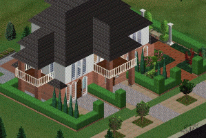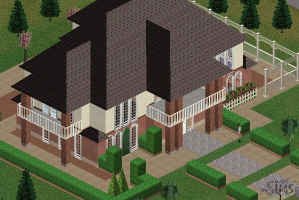 DESCRIPTION: A large, sprawling brick mansion with 2 large bedrooms, a study, 2 baths, a lovely landscaped backyard, and balcony. Perfect for sims living the high life. =-)