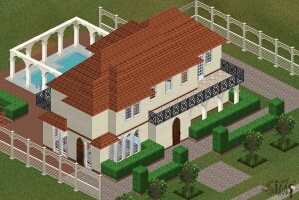 DESCRIPTION: A huge 3 bedroomed house with a fish pond, a back terrace, and portico. Very good for large families of more than 4 Sims.