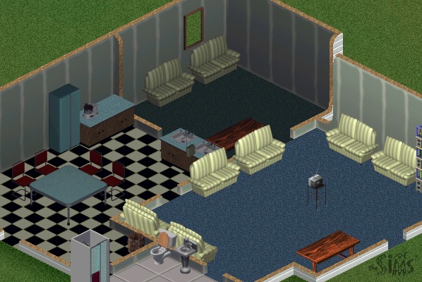 About the phone– the telephone would normally be placed in the living room. However, because our subjects will be sleeping in the living room, we don’t want to disturb their sleep time in case the phone rings. Trust me– Maxis *will* have that phone ringing if it’s in the same room as your Sims!Alright, so that covers all you pretty much need to know! Remember, when starting out with the 8 Sim Challenge: 1) create a family with a few Virgos to help make the house as clean as possible 2) build a cheap, small house (within reason!) 3) buy a few furnishings and expensive stuff, but don’t skip on the essentials. 4) place furniture and objects in a way to make managing the house easier