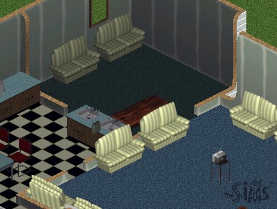 Here is a closer shot of the quarters to show you what I mean about placement. You’ll notice that I separated two of the couches from the other ones. I did that in case some Sims need some sleep time while the TV is on in the living room.