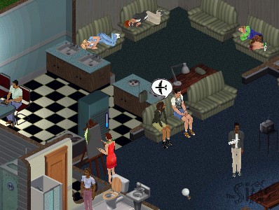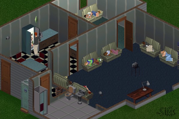 In this house, although parts of the house work different shifts, the shifts aren’t so far apart that they make a difference. So, for large parts of the day, all 8 sims are in the house.