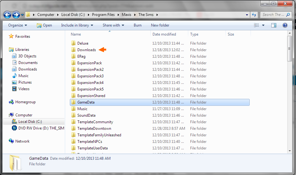 Browse to The Sims folder on your system. - Step Four: Place .IFF Inside of “Downloads” Folder