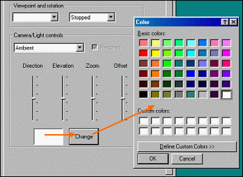 This causes a typical Windows color selector to pop up. I will choose what looks like a very dark navy blue for “AMBIENT.”Uh oh! Now look what happened! Now my sim is all dark blue!