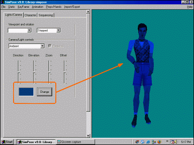 The next thing I’m going to do is to change the quality of light that is flooding the stage. So I click on the big button marked “Change:”