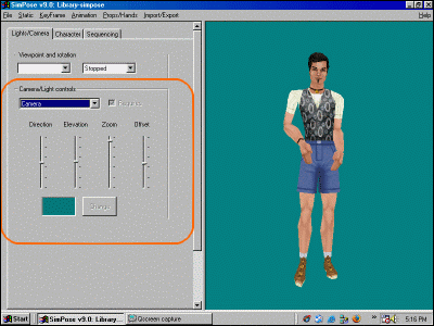 Here is Mark in typical flat lighting. But we want him in more dramatic, colorful lighting. To get started, let’s go to the “Camera/Lights” section under the “Lights/Camera” tab.