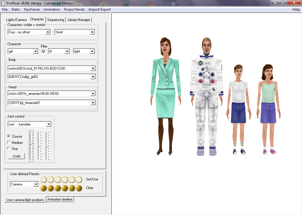 SimPose only comes with four default characters and skins- a man, a woman, a boy, and a girl: